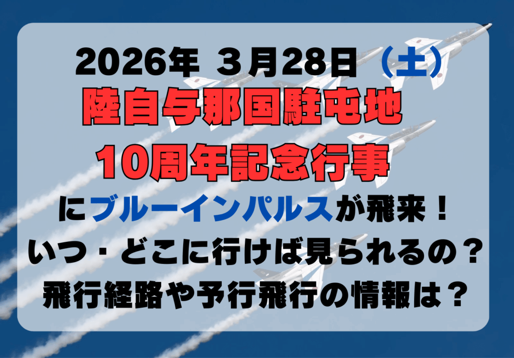 【いつ・どこで見られるの?】ブルーインパルス@与那国駐屯地 2026年3月28日(土) 飛行ルートや予行飛行の有無・駐車場の情報のまとめ