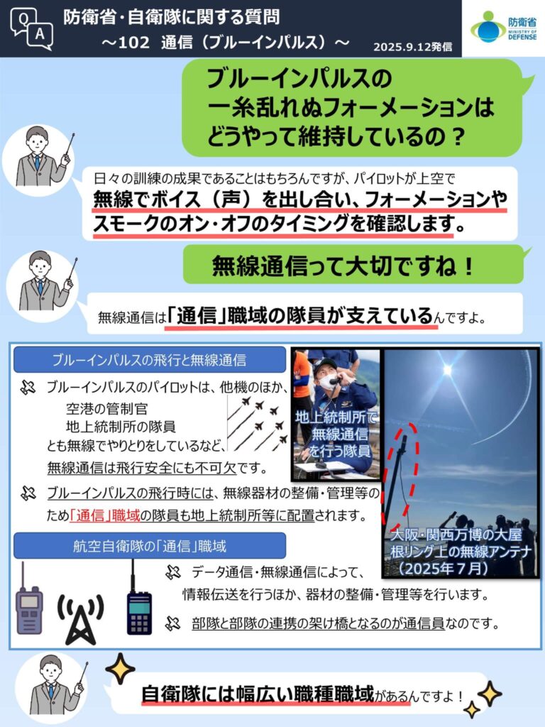 防衛省の公式Xでもブルーインパルスの無線交信について紹介されています