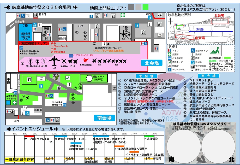 岐阜基地航空祭会場への徒歩での出入り口は3個所開放されます。
