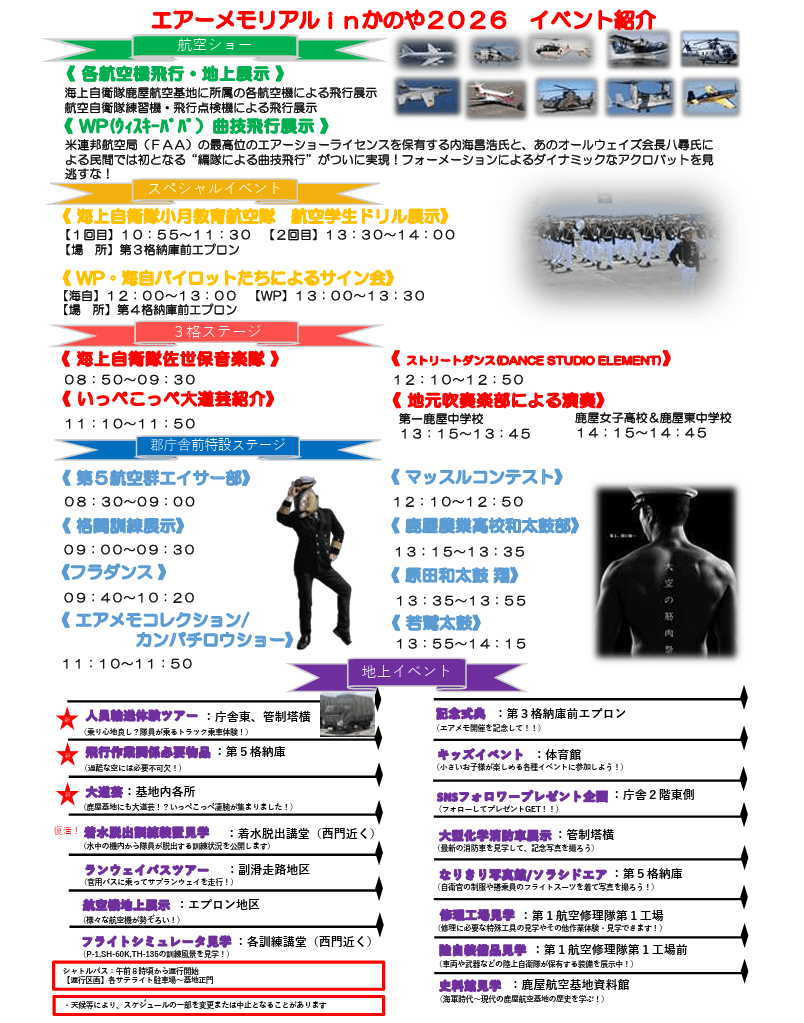 ※本記事ではエアーメモリアルinかのやの一環として鹿屋基地で開催される航空イベントを一部『鹿屋基地航空祭』と表現しています