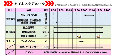 また戦術輸送機、空中給油機、救難機、戦闘機による展示飛行は8:30頃から11:00頃の間で実施されます。